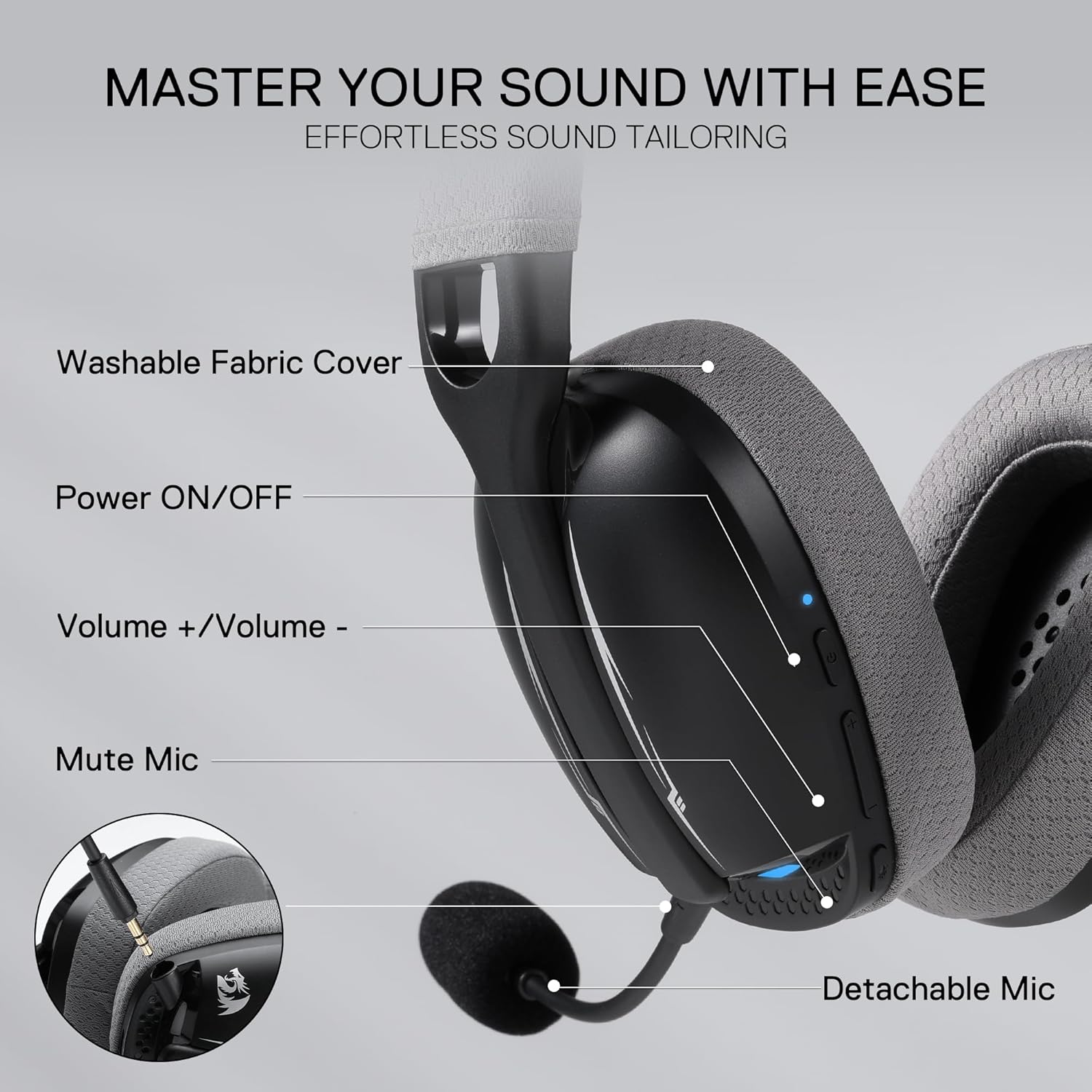 • Lightweight Comfort - Weighing only 200g (7.05 oz), the H878 wireless gaming headset offers all-day comfort and reduces head pressure. Its soft memory foam padding enhances sound quality, while breathable earcups keep your ears cool during long sessions.