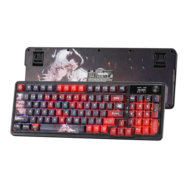 Redragon K719 PRO Wireless Gasket Gaming Keyboard w/Hype Screen & Knob, 95 Keys Mechanical Keyboard, Easy-Control 1.14’’ TFT Info Display, 5-Layer Noise Dampening, Custom Linear Switch, Anime Edition